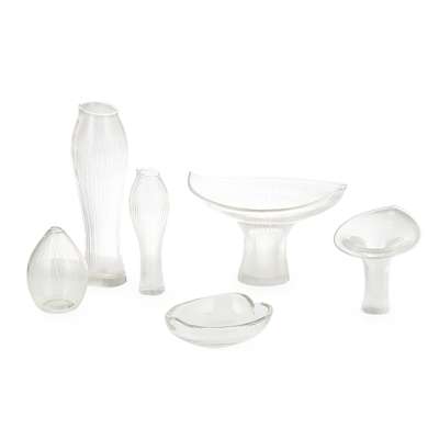 SIX ENGRAVED GLASS VESSELS, CIRCA 1960