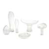 various inscribed maker's marks, comprising a FOOTED BOWL, 15.5cm high; a small flower-form VASE, 13cm high; a leaf-form BOWL, 13.5cm long; a large slender VASE, 25.5cm high; a smaller slender VASE, 17.5cm high; and a small rounded VASE, 11cm high (6)