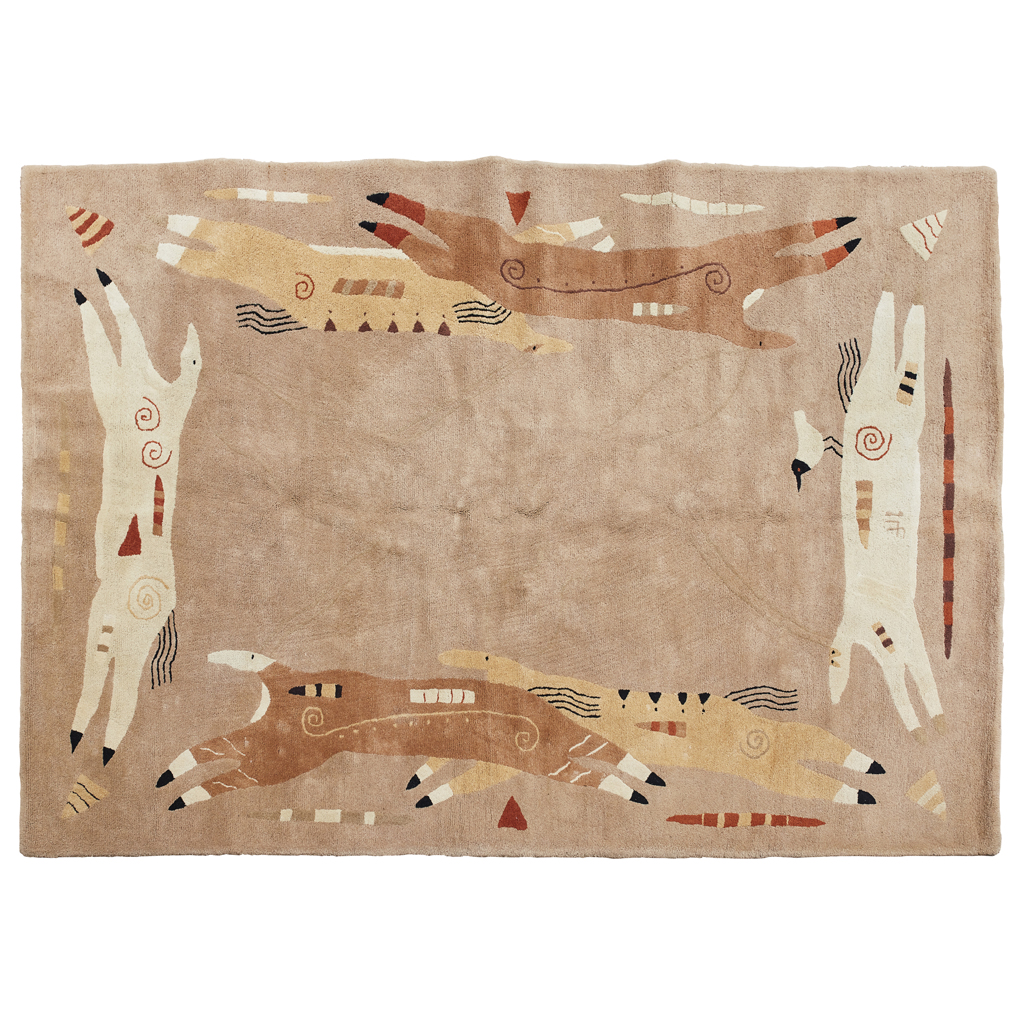 woven with a design of stylised running horses reserved on a buff ground