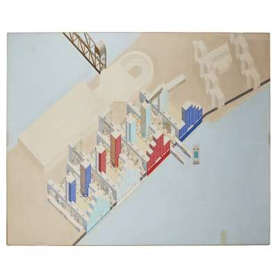 ROOSEVELT ISLAND REDEVELOPMENT PROJECT, NEW YORK, 1975 (AXONOMETRIC)