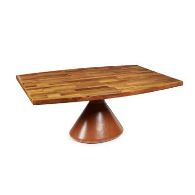 with curved rectangular top (reduced) raised on a leather-covered cast concrete base