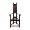 the high back with turned spindles, enclosed by curved arms and a triangular seat