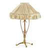 the central column with three curved brackets raised on a cast quadruped base with facetted feet, stamped maker's mark under foot W.A.S. BENSON, with later pleated silk shade