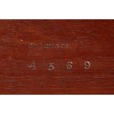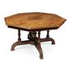 the octagonal moulded top raised on ring-turned supports on an inlaid cross support with brass castors, stamped maker's marks and serial number