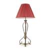 the central column with three scrolled brackets on tripod support with pad feet, later pleated silk shade