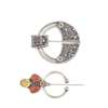one of Celtic inspiration, attributed to Gwendoline Whicker, with applied wirework set with garnets, 4.8cm wide; the other attributed to Maud Eastman, set with cut and cabochon stones, 7cm wide (including pin) (2)