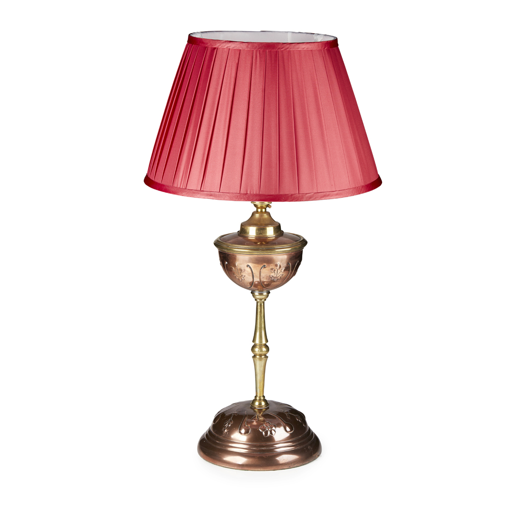 BRASS AND COPPER TABLE LAMP, CIRCA 1890