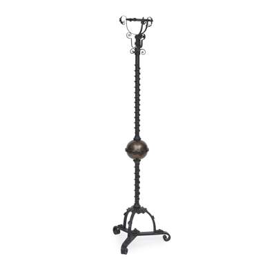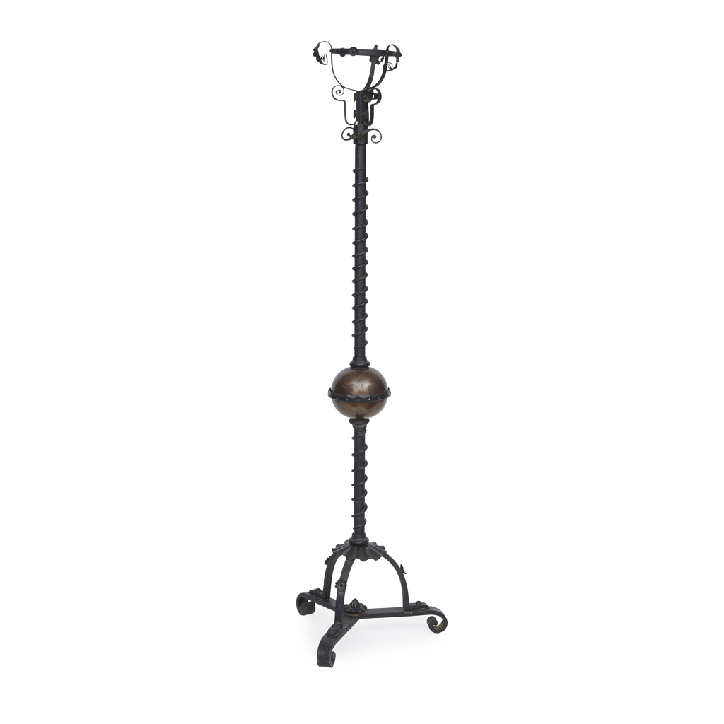 ARTS & CRAFTS WROUGHT IRON AND COPPER EXTENDING STANDARD LAMP, CIRCA 1910