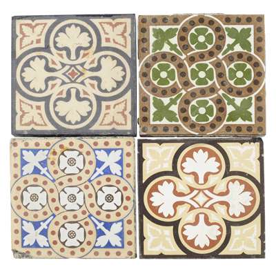 GROUP OF TWELVE GOTHIC REVIVAL 6 INCH ENCAUSTIC TILES, CIRCA 1860