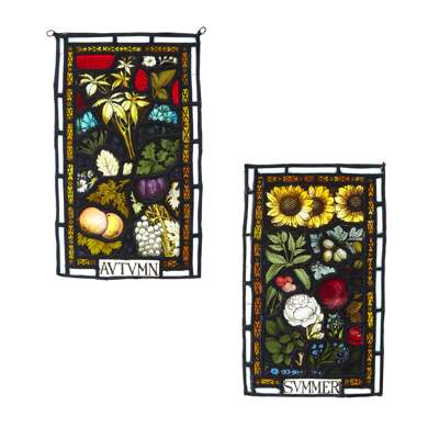 PAIR OF ARTS & CRAFTS STAINED, LEADED AND PAINTED GLASS PANELS, CIRCA 1890