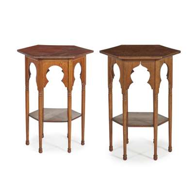 NEAR PAIR OF OAK ANGLO-MORESQUE OCCASIONAL TABLES, CIRCA 1900