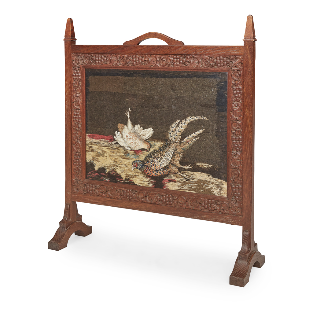 ARTS & CRAFTS OAK FIRESCREEN, CIRCA 1920