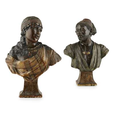PAIR OF PATINATED TERRACOTTA BUSTS, LATE 19TH CENTURY
