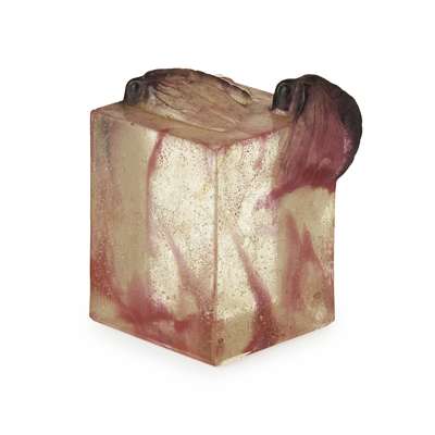 of cube form, moulded with moths, moulded maker's marks G. ARGY-ROUSSEAU (cracked)
