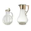 TWO VICTORIAN SILVER PLATE AND GLASS CLARET JUGS, CIRCA 1880