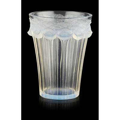 of tapered form with moulded band of flowers, stencil etched mark R. LALIQUE/ FRANCE