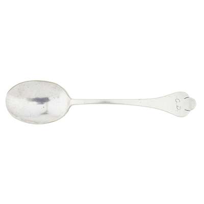with oval bowl and trefoil finial, stamped to the reverse MISS CRANSTON'S