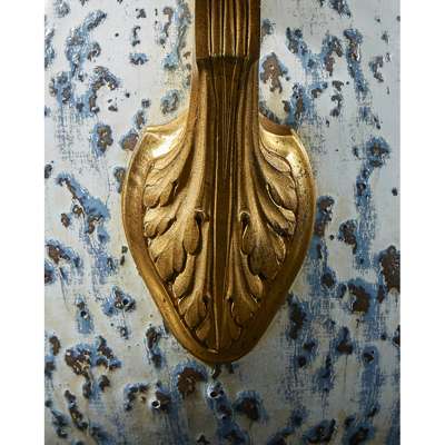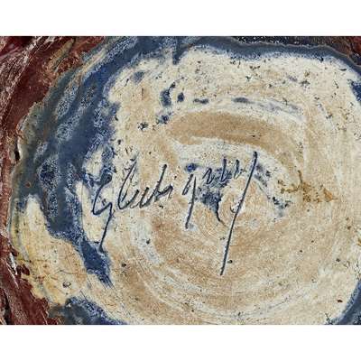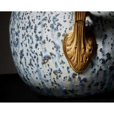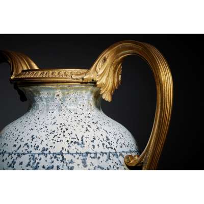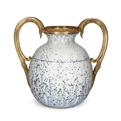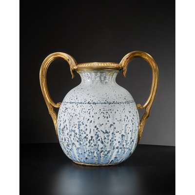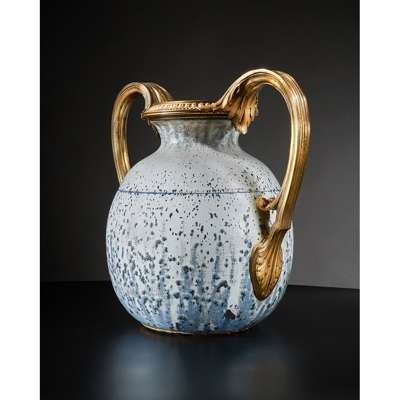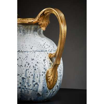 mottled grey and blue glazed stoneware vase, with gilt bronze mounts, signed GLATIGNY to the base