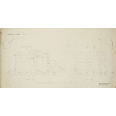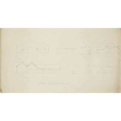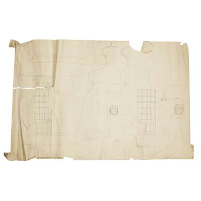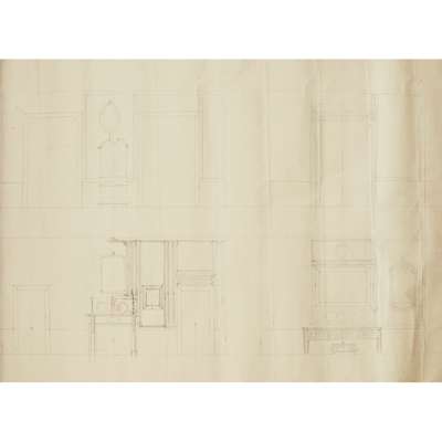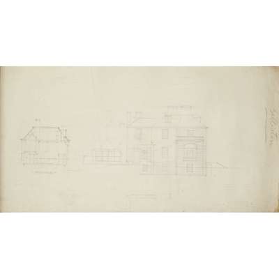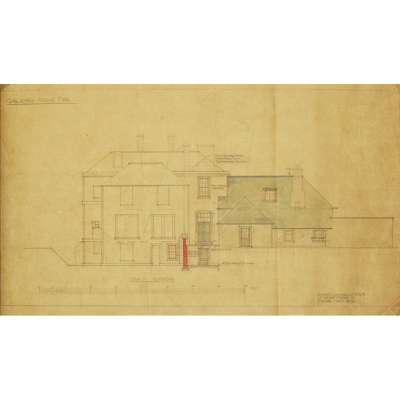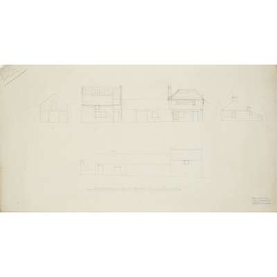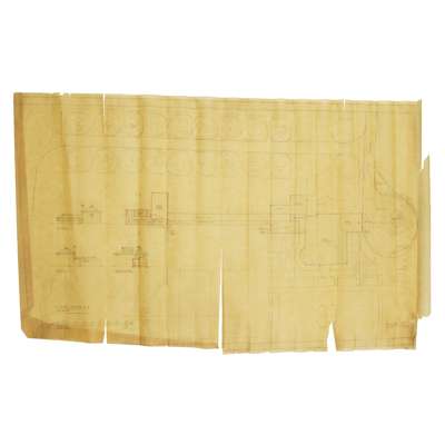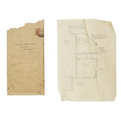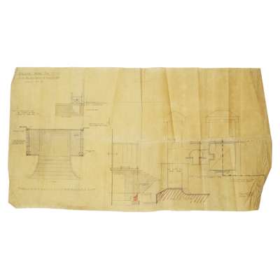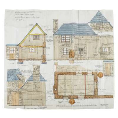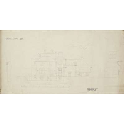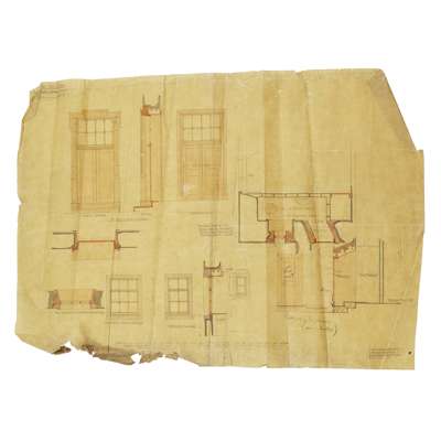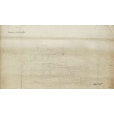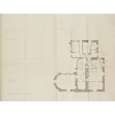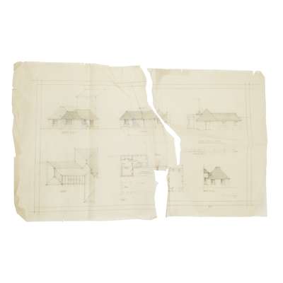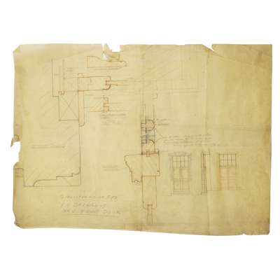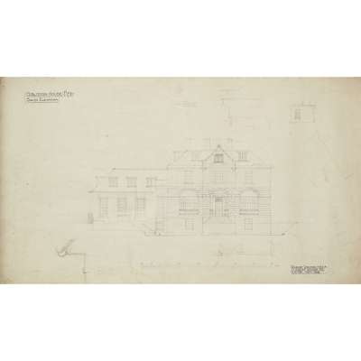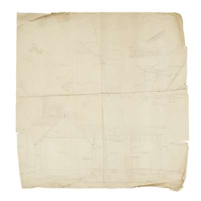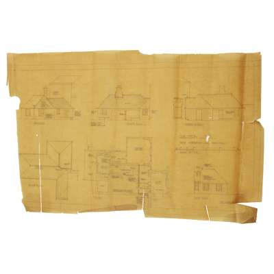 including VARIOUS PLANS OF THE HOUSE, dated August 1916; PLANS FOR THE GARDENER'S TOOL HOUSE, May 1918; NORTH; SOUTH; EAST ELEVATIONS; LONGITUDINAL SECTION; CROSS SECTION and ROOF PLAN, dated November 1919; SCULLERY PLATE RACK, March 1921; DOOR & WINDOW DETAILS, February 1920; DINING ROOM LAYOUT, MOULDING DETAILS and several other plans and drawings (qty)