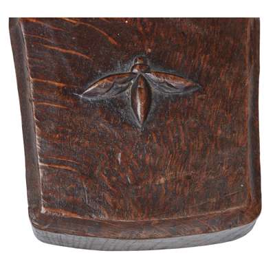 the thick octagonal top raised on cruciform tapered column and crossed base, carved moth signature