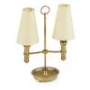 with twin adjustable arms each with conical parchment shades raised on a dished base