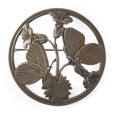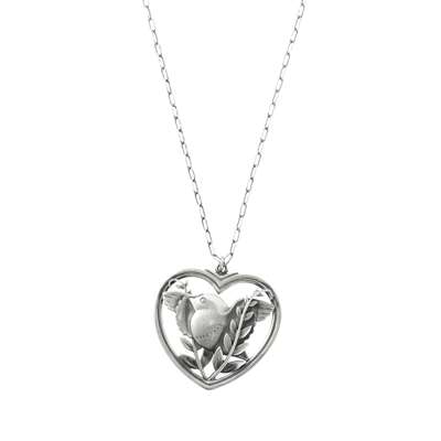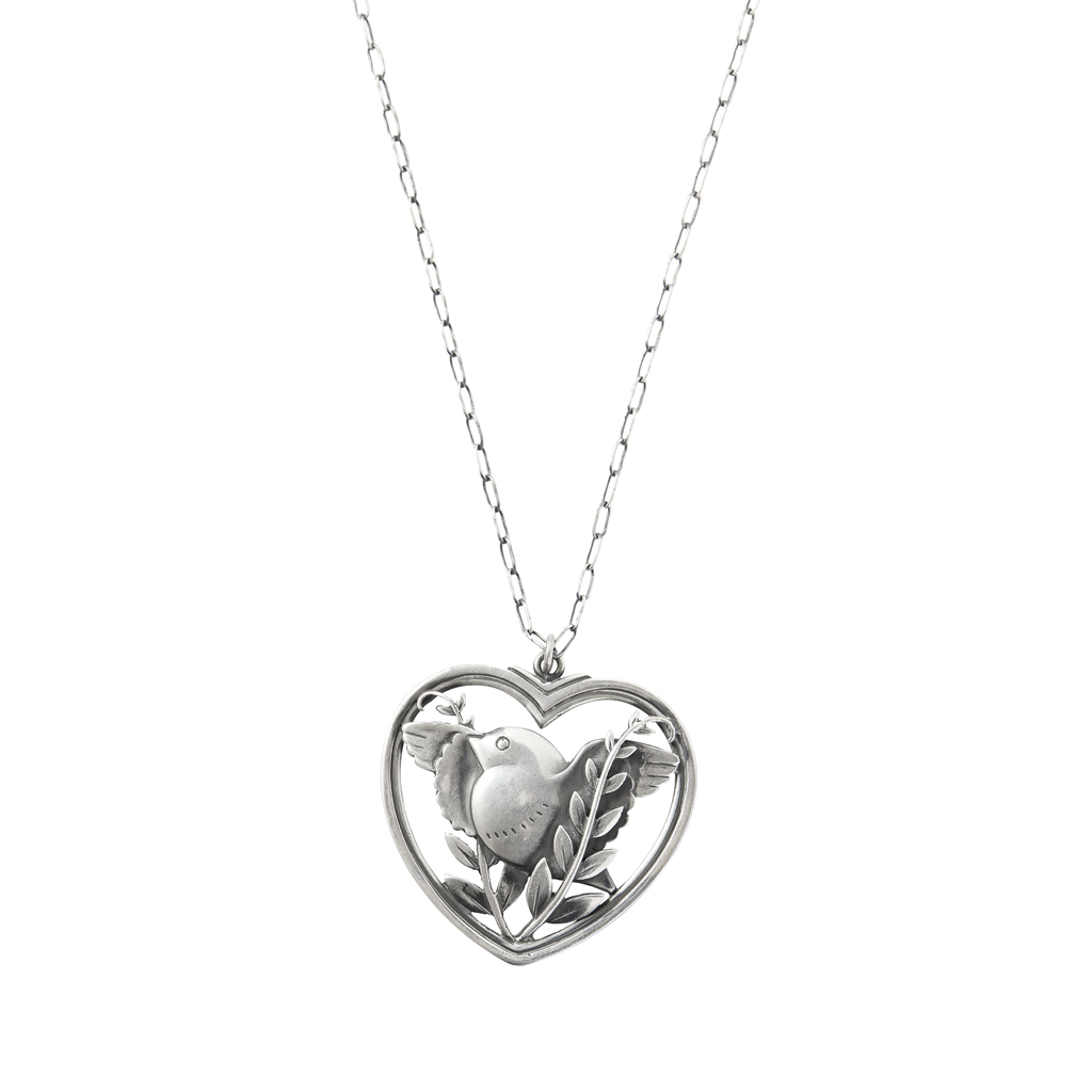 designed as a songbird within a heart, with link chain, stamped maker's marks GEORG JENSEN/ 925/ STERLING DENMARK/ 97, 4cm long; and a GEORG JENSEN & WENDELSTERLING SILVER BROOCH, CIRCA 1940, opposing butterflies , stamped maker's marks GEORG JENSEN & WENDEL/ STERLING/ DENMARK 283, 5.5cm diameter (2)