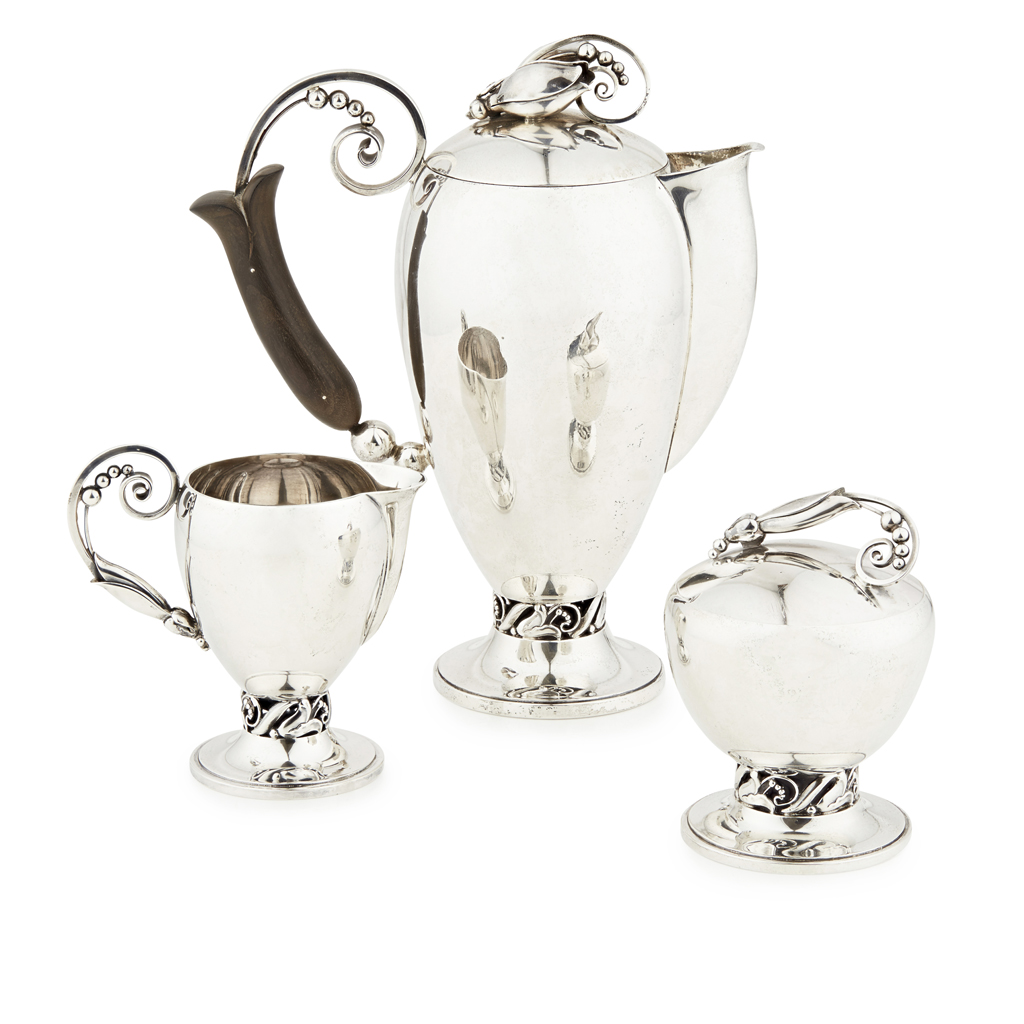 STERLING SILVER THREE-PIECE COFFEE SERVICE, CIRCA 1940