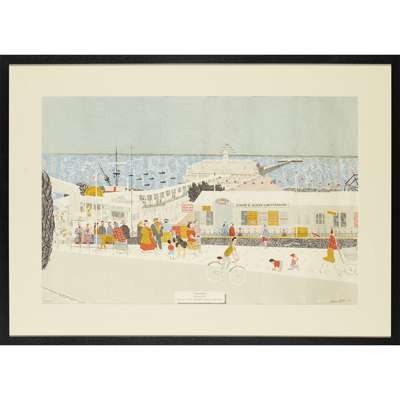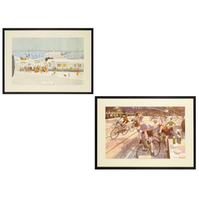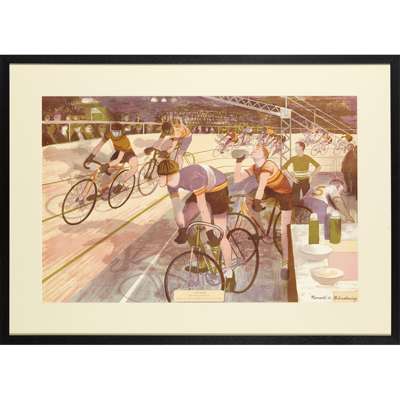 lithographic print, signed and dated in pencil lower right, framed, 46.5cm x 72cm; and RONALD A. GLENDENING 'CYCLE RACING', lithographic print, also published by The Curwen Press, signed lower right, framed, 47cm x 72.5cm (2)