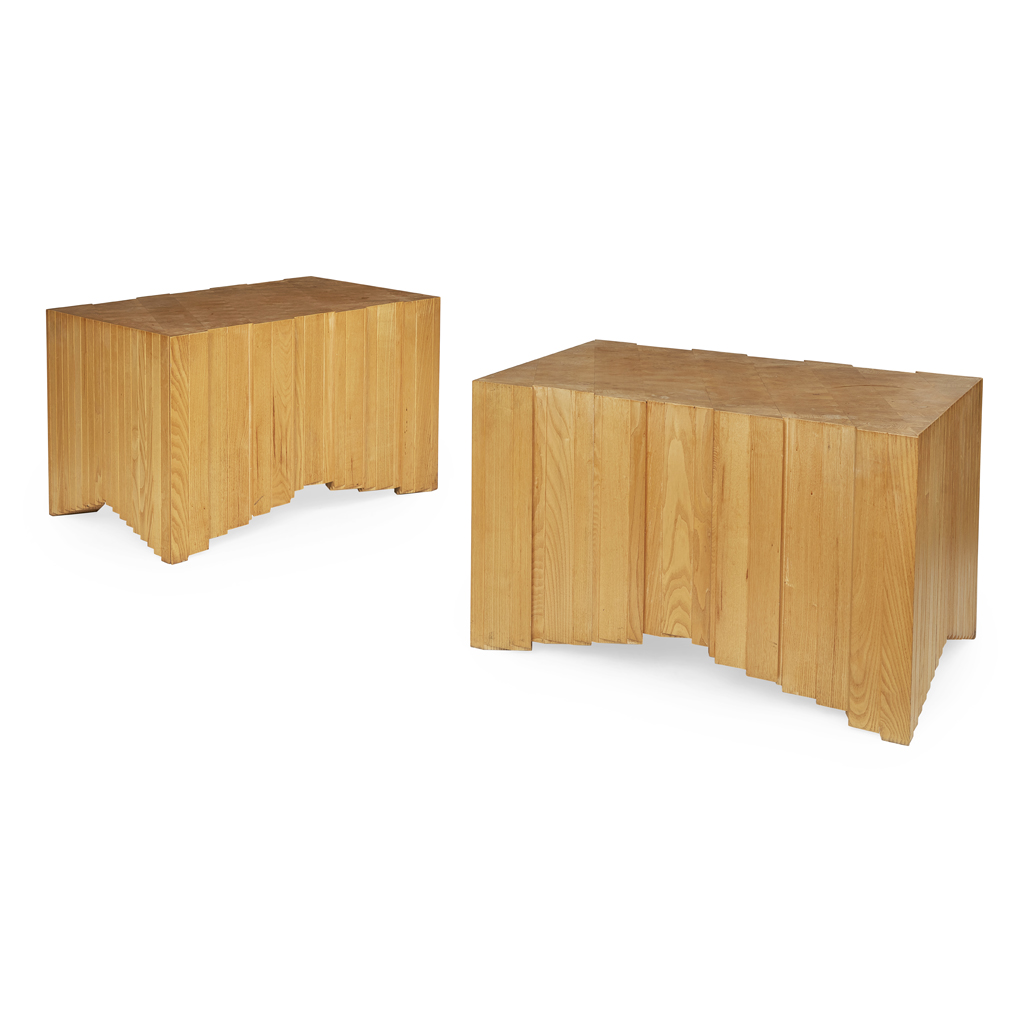 PAIR OF ASH LINEN FOLD OCCASIONAL TABLES, 1990S