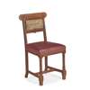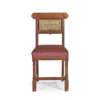 each with chamfered decoration, the top and mid-rail with carved rosettes above upholstered seat and raised on square chamfered legs linked by stretcher, 48cm wide, 89cm high, 44cm deep; and ANOTHER SIMILAR CHAIR with upholstered back panel, 43cm wide, 89cm high, 38cm deep (6)