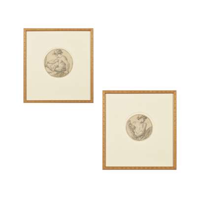 each depicting a classical nude figure, ink and pencil, framed (2)