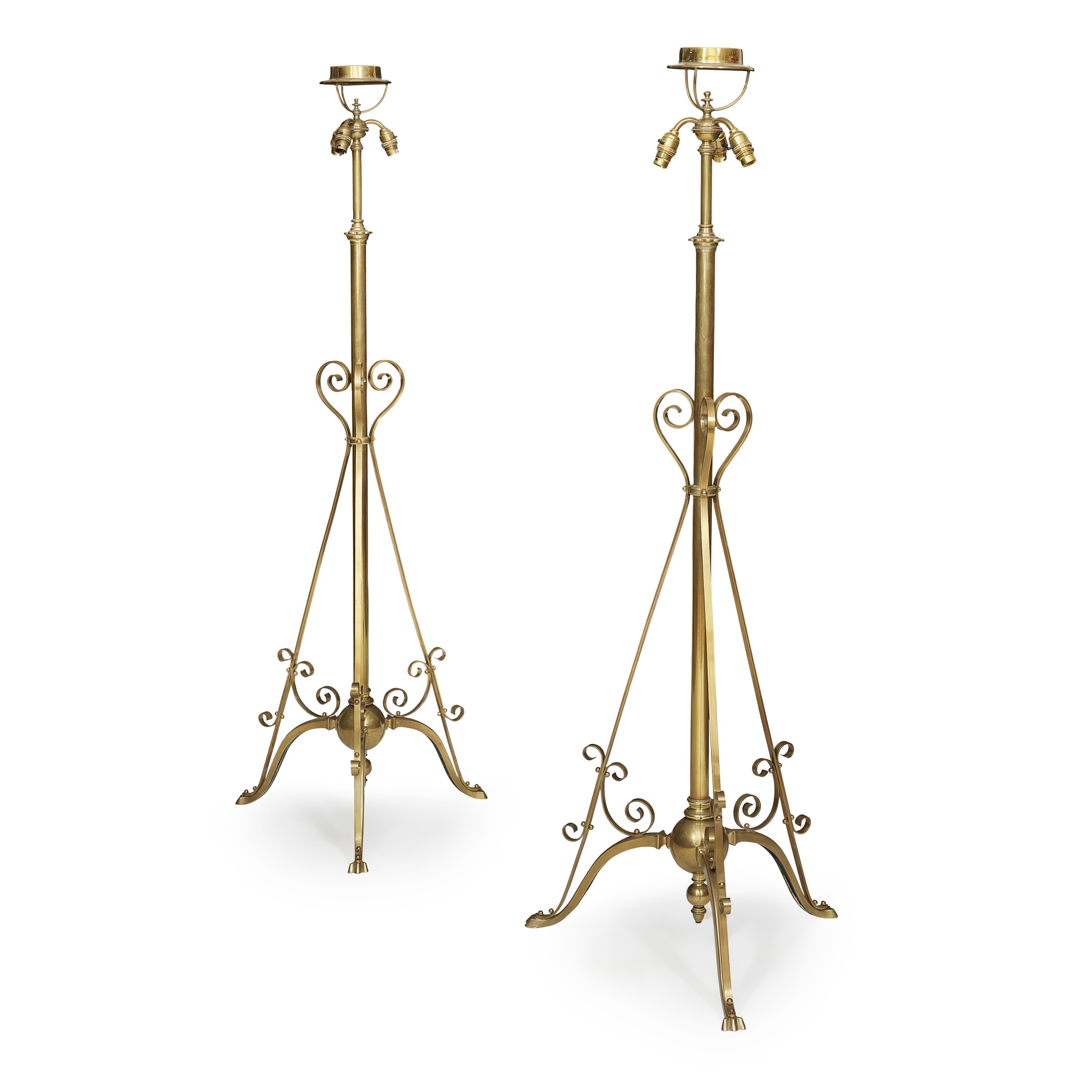 PAIR OF ARTS & CRAFTS BRASS EXTENDING STANDARD LAMPS, CIRCA 1900