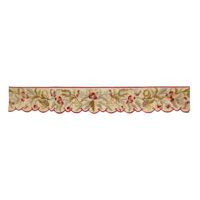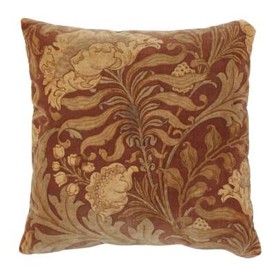 each designed with a repeat pattern of peony and artichokes, 42cm x 313cm; the other 42cm x 307 cm; together with an ARTS & CRAFTS CUSHION, with stylised lily design, later made up, 53cm square