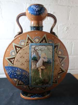 AESTHETIC MOVEMENT PÂTE-SUR-PÂTE MOON FLASK, CIRCA 1875
