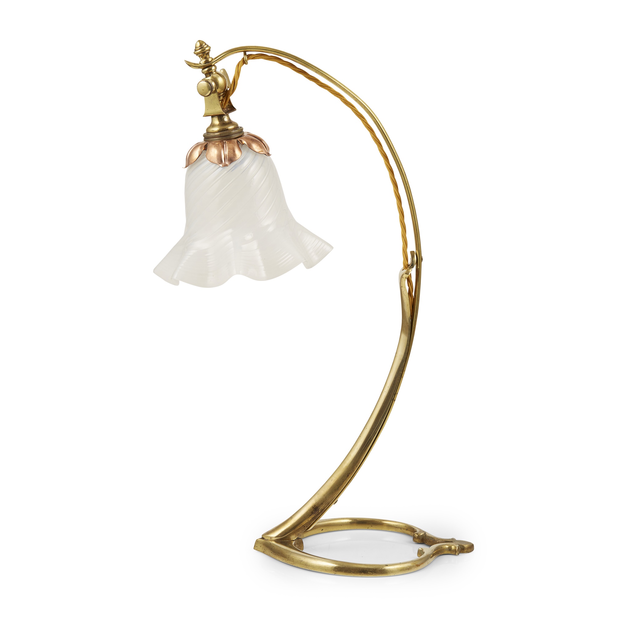 ARTS & CRAFTS BRASS AND COPPER TABLE LAMP, CIRCA 1900