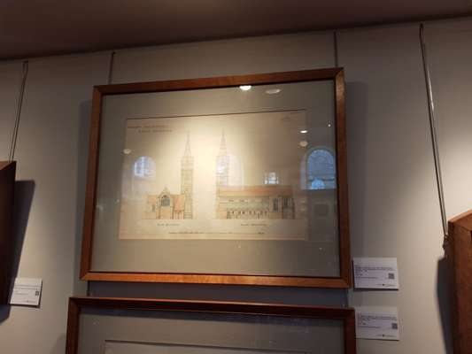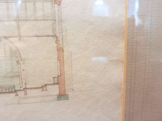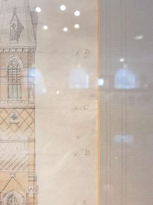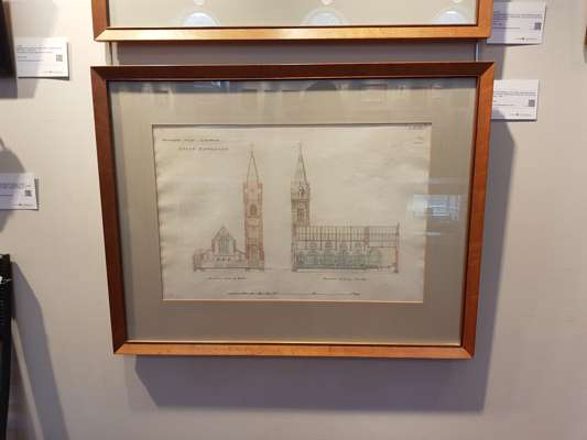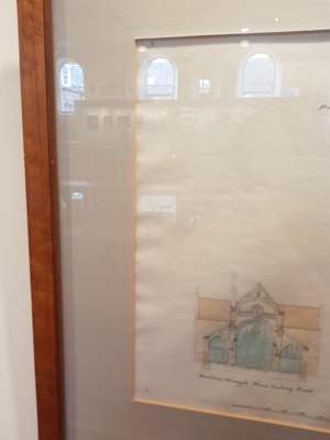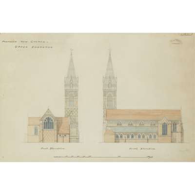 Note: These plans are for St Mary's Church, an Anglican church in Fore Street, Upper Edmonton, Middlesex designed by Butterfield and consecrated in 1884. The church was built in red brick with stone dressings and consisted of nave, north and south aisles, and chancel but was demolished in 1957. Butterfield's sister Anne married Benjamin Starey in 1838. His family had connections with High Churchmen which may have been an influence on Butterfield as he was drawn more closely into the Starey family and theirsocial circle. These plans are provenanced to the Starey family by decent