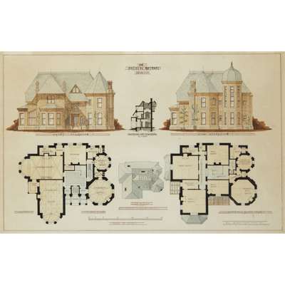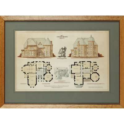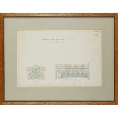 pencil, pen & ink and wash, showing the elevations and sections and each inscribed PROPOSED NEW CHURCH: UPPER EDMONTON, each bears stamp ECCLESIASTICAL COMMISSIONERS APPROVED 26 JUNE 1883, 35.5cm x 52cm; and 'AN ARTISTIC RETREAT', AN ARTISTIC STUDY, DATED 1871, showing plans and elevations signed AW 13.11+9.12+71, 31cm x 49cm