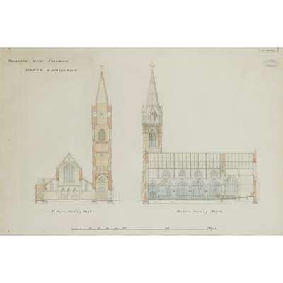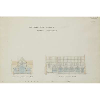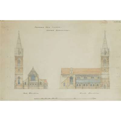 PROPOSED NEW CHURCH: UPPER EDMONTON, FOUR GOTHIC REVIVAL DRAWINGS, 1883