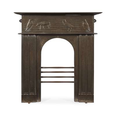 ARTS & CRAFTS CAST IRON FIREPLACE, CIRCA 1908