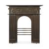 cast with a decorative frieze of rooks below the mantel shelf, the jambs with ribbed decoration