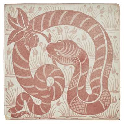 depicting a serpent with an apple branch, stamped marks for Sand's End pottery
