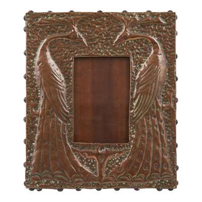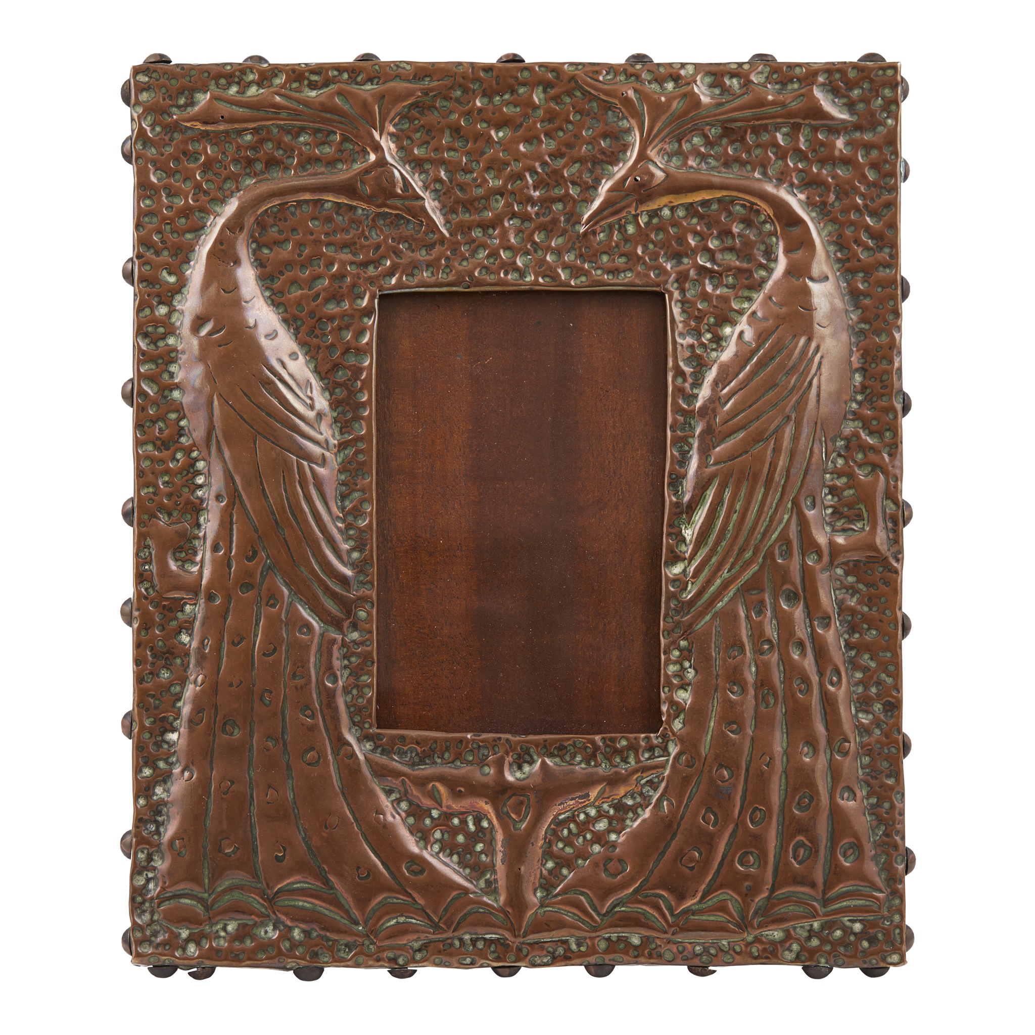 REPOUSSÉ COPPER ‘PEACOCK’ PHOTOGRAPH FRAME, CIRCA 1900