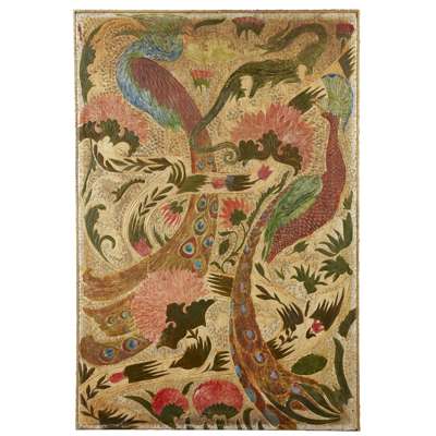 the design of peacocks and exotic beasts amongst luxuriant foliage, painted in colours with gilt embellishments