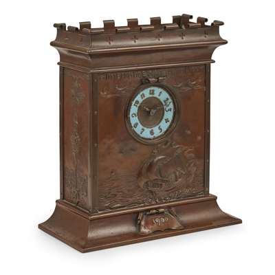 ARTS & CRAFTS COPPER MANTEL CLOCK, DATED 1900
