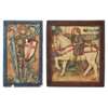 each painted in tempera, with impressed maker's marks, depicting St George and St Joan of Arc
