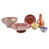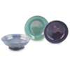 covered in a lavender lustre glaze, impressed marks RUSKIN/ ENGLAND/ 1924, 23cm diameter; together with a GREEN LUSTRE BOWL, impressed marks, RUSKIN/ ENGLAND/ 1922, 25cm diameter; and a BLUE LUSTRE FOOTED BOWL, impressed mark RUSKIN, 24.5cm