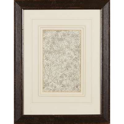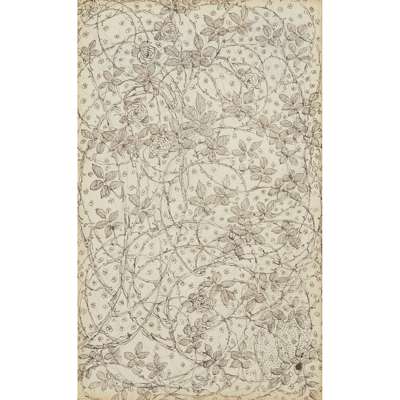 ink and pencil on paper, depicting an allover design of flowering roses, unsigned, framed