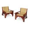 manufactured by Bruce Hamilton, Glasgow, each with upholstered back and seat with broad tapered armrests and curved supports, bears maker's label