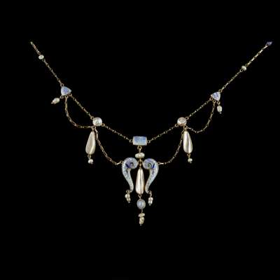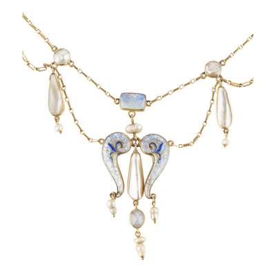 ARTS & CRAFTS ENAMEL, PEARL AND SAPPHIRE-SET NECKLACE, CIRCA 1905