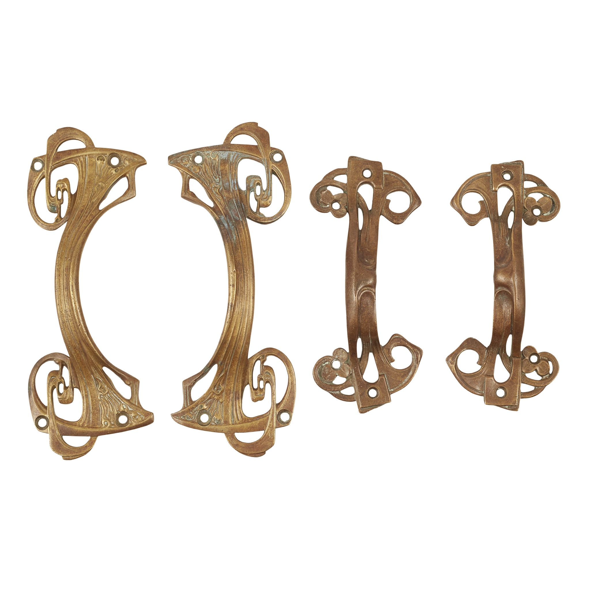 TWO PAIRS OF ART NOUVEAU CAST BRONZE DOOR HANDLES, CIRCA 1900